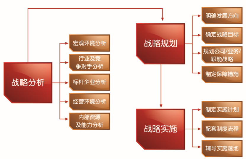 華夏經(jīng)緯憑借多年大中型企業(yè)管理咨詢經(jīng)驗(yàn),運(yùn)用先進(jìn)的戰(zhàn)略工具,協(xié)助企業(yè)制定中長期發(fā)展規(guī)劃,并通過設(shè)計(jì)配套的管理制度及流程,提高企業(yè)戰(zhàn)略管理水平,同時(shí)秉承與客戶共成長的理念,協(xié)助企業(yè)落地實(shí)施,推動(dòng)企業(yè)合理配置資源,增強(qiáng)企業(yè)的競爭優(yōu)勢。