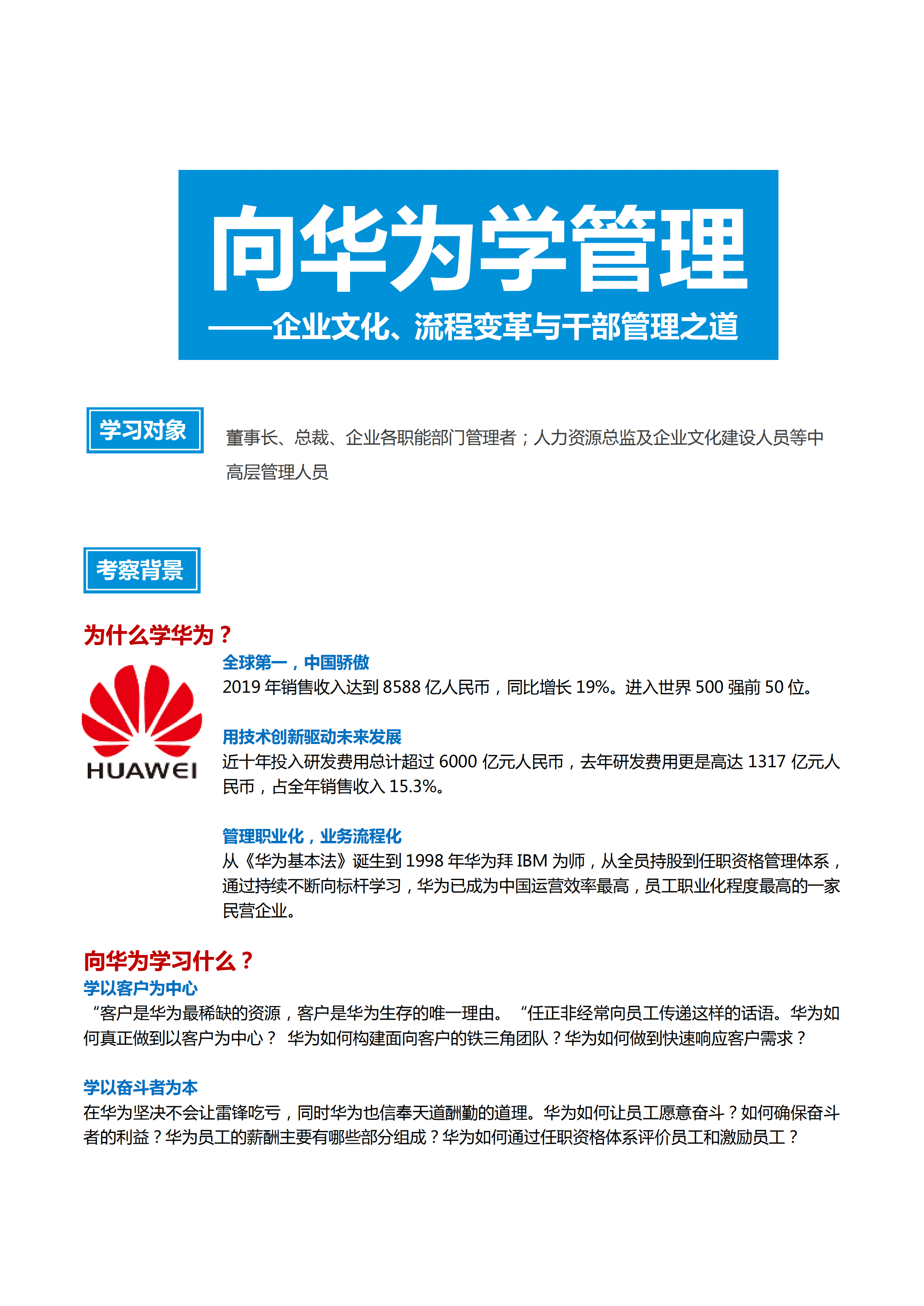 【向華為學管理】-企業(yè)文化、流程變革與干部管理之道