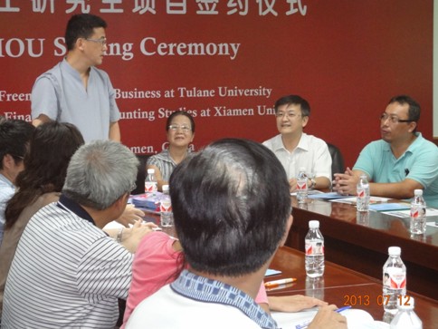 座談會(huì)在廈門(mén)大學(xué)會(huì)計(jì)發(fā)展研究中心會(huì)議廳舉行。參加接待的主要有:廈門(mén)市總會(huì)計(jì)師協(xié)會(huì)副會(huì)長(zhǎng)、廈門(mén)市外商投資企業(yè)會(huì)計(jì)學(xué)會(huì)會(huì)長(zhǎng)、廈門(mén)大學(xué)管理學(xué)院會(huì)計(jì)系教授、廈門(mén)大學(xué)會(huì)計(jì)發(fā)展研究中心副主任陳少華教授;廈門(mén)市總會(huì)計(jì)師協(xié)會(huì)副會(huì)長(zhǎng)兼秘書(shū)長(zhǎng)何渝文;廈門(mén)市總會(huì)計(jì)師協(xié)會(huì)常務(wù)理事、華夏經(jīng)緯財(cái)務(wù)咨詢(廈門(mén))有限公司總裁游相華博士。會(huì)議由何渝文副會(huì)長(zhǎng)主持,游相華博士致歡迎辭。